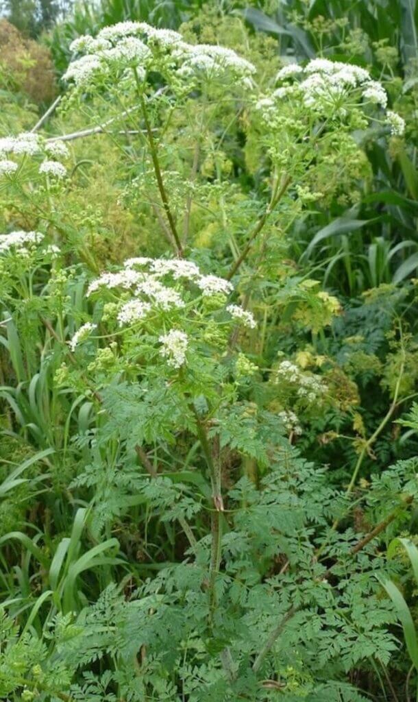 All parts of the plant — roots, stems, leaves, flowers, and seeds — contain toxic alkaloids (especially coniine and gamma-coniceine), which affect the nervous system.