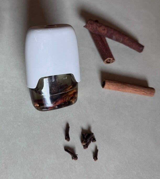 - Add 10–15 cloves, 1 cinnamon stick, and a few drops of coconut oil to the RAID refill container