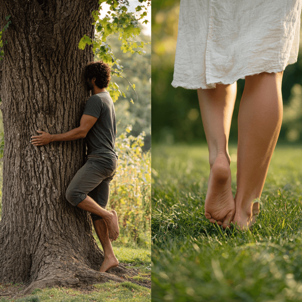 - Reduces stress and anxiety β Touching a tree barefoot lowers cortisol and encourages calm.