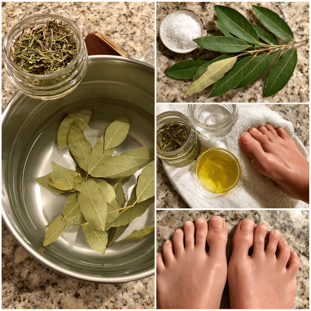Mix everything in warm water and soak your feet for 15โ20 minutes.